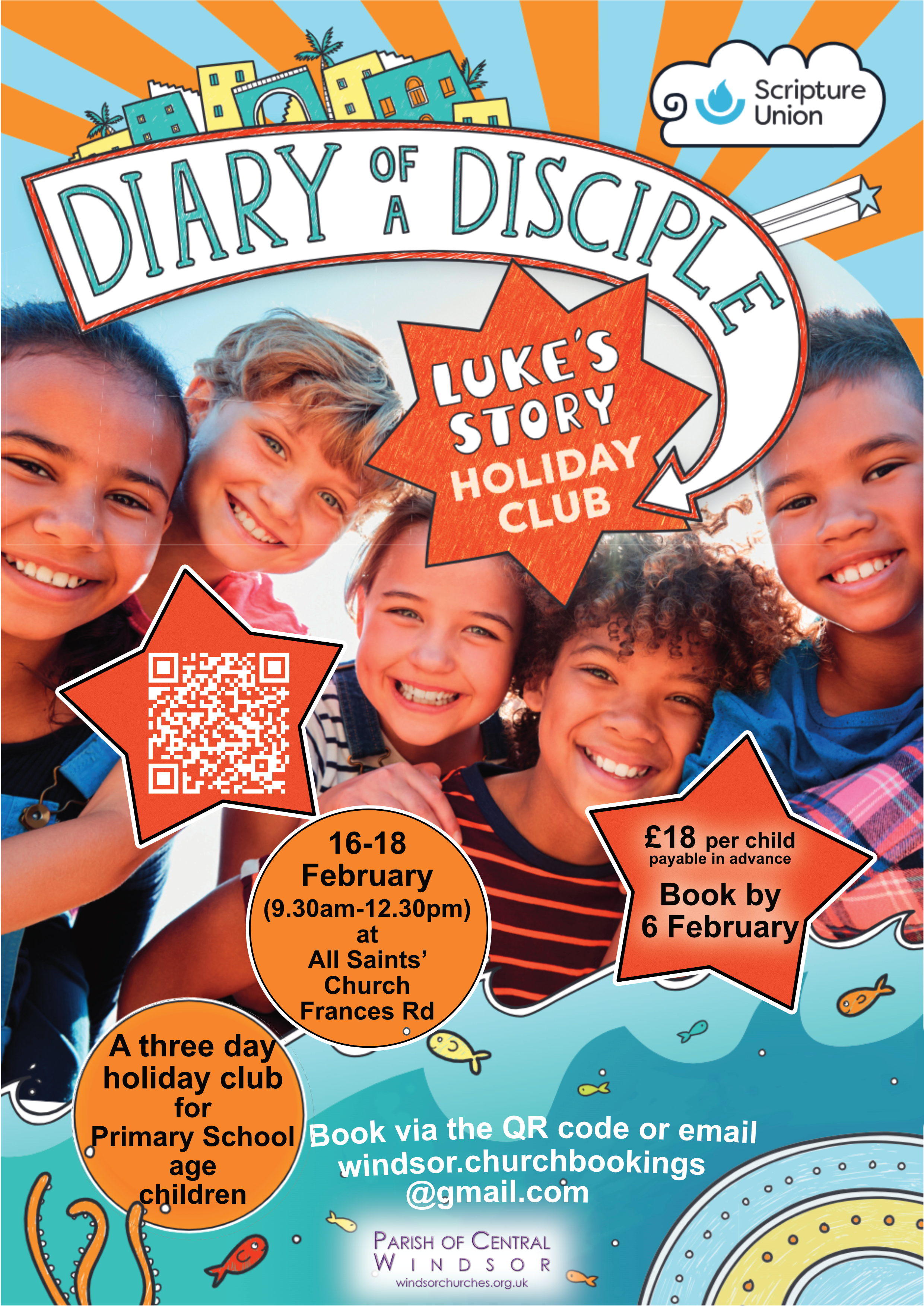 The Holiday Club uses resources from the Scripture Union and is based on stories from St Luke's Gospel. It is for primary school age children. We are delighted to welcome all children to the club (there is no requirement or expectation that children or their families go to church, or would describe themselves as Christian).